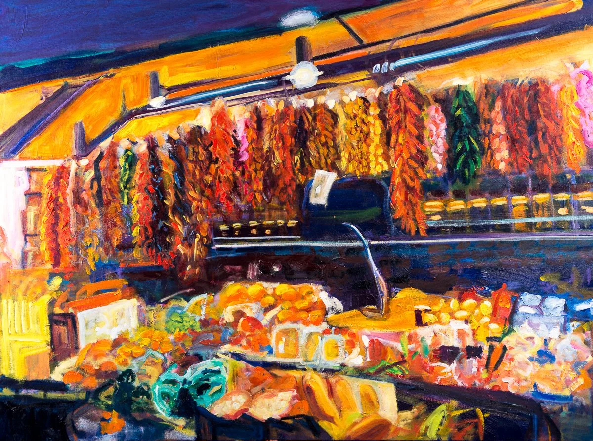 Late Night Farmacia (Chiapas, MX). 2024. Oil on Wood Panel. w 33 x h 48 in. Available $5,000
